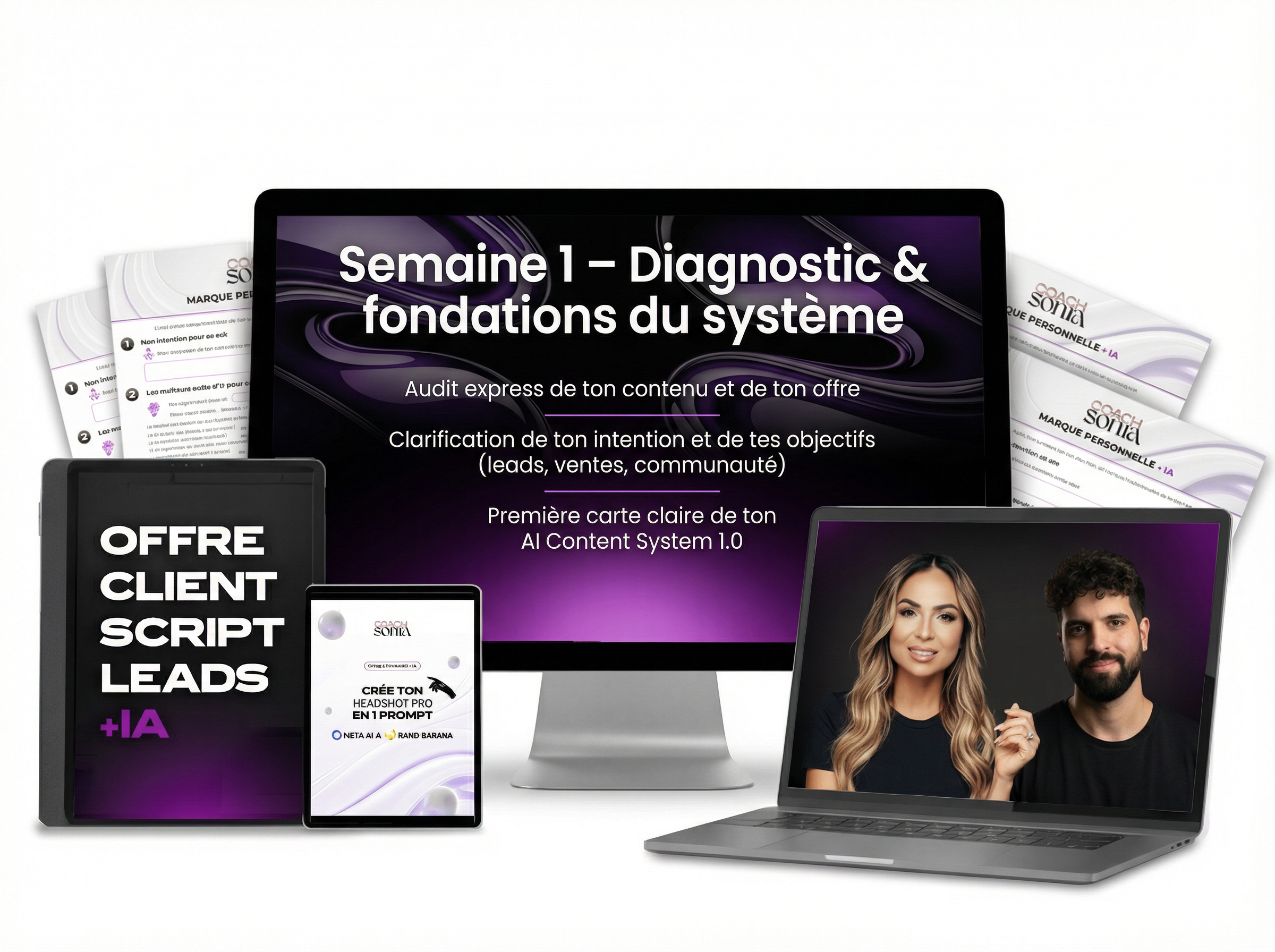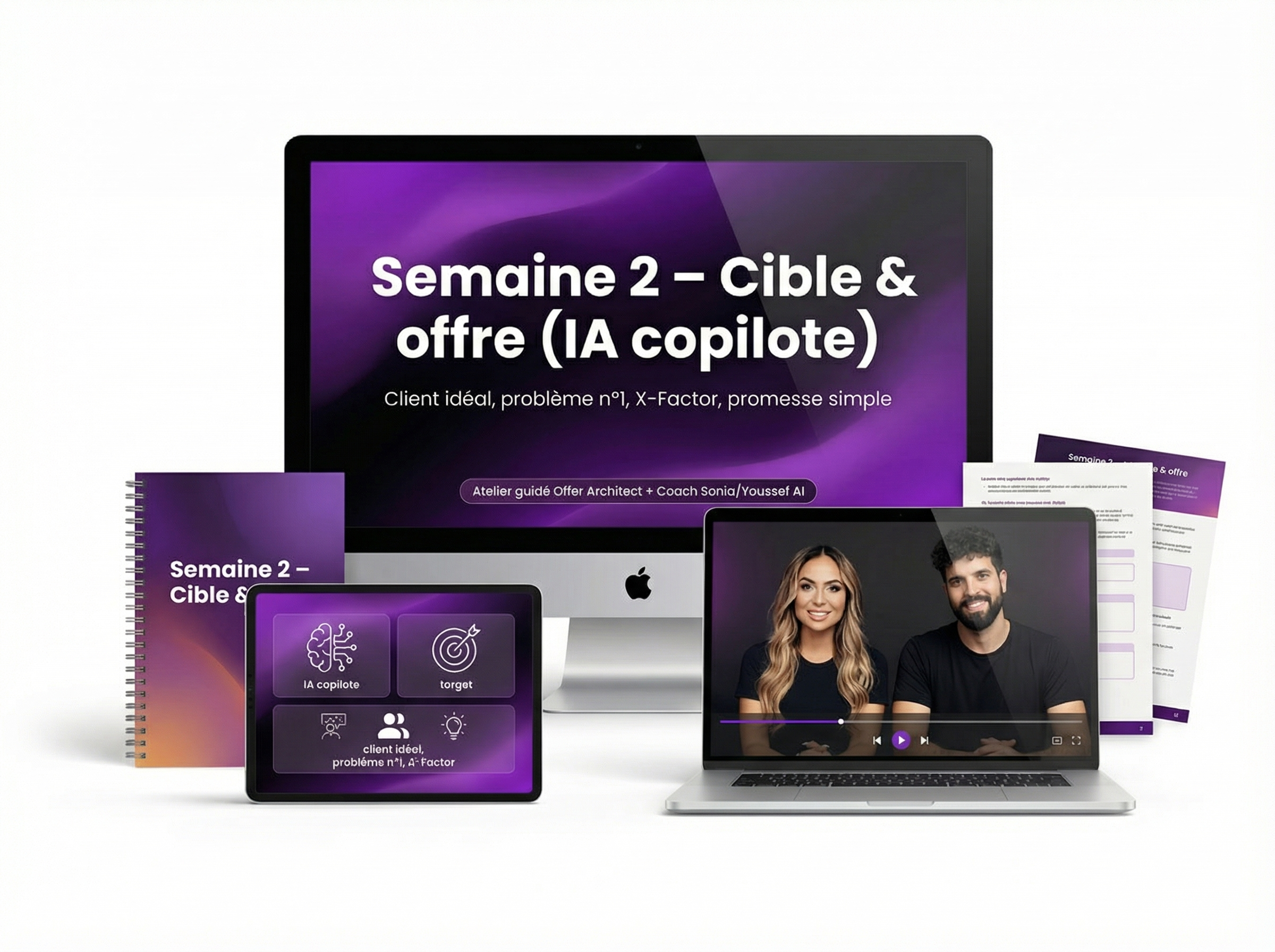 Avec l’IA comme copilote, tu définis ton client idéal, son problème n°1 et ton X-Factor, puis tu structures une promesse simple grâce à un atelier guidé Offer Architect + Coach Sonia/Youssef AI.